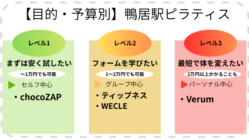 鴨居駅周辺の男性OKのピラティススタジオを目的と予算で3段階にまとめました。